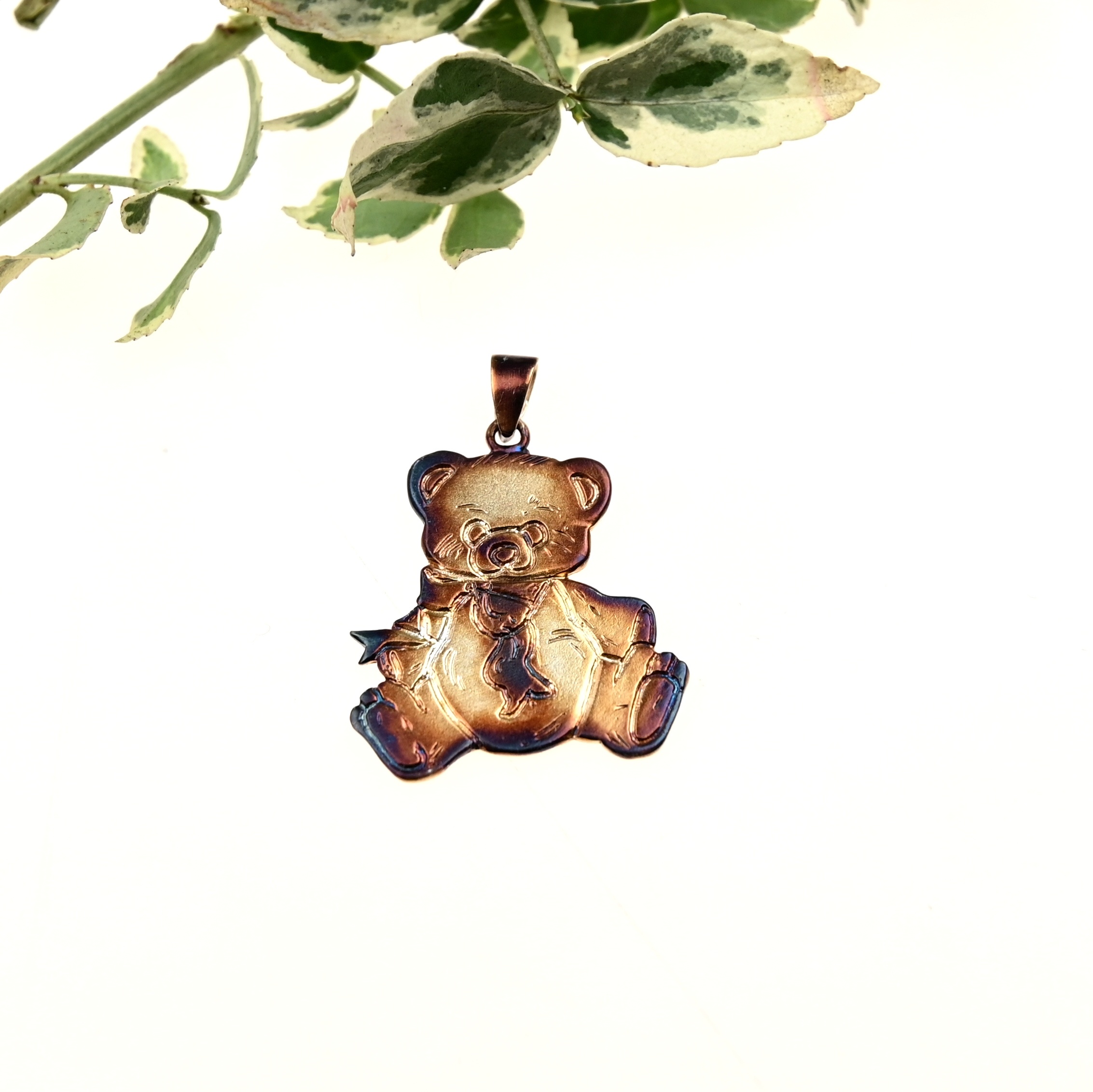 Wykonana ze srebra próby 925 i pokryta oksydą w brązowym odcieniu, zawieszka zyskuje piękne, ciepłe barwy oraz subtelną głębię. Delikatne przejścia kolorystyczne podkreślają kształt misia i nadają mu nieco nostalgiczny, lekko vintage’owy charakter. To biżuteria, która przyciąga uwagę, ale jednocześnie niesie w sobie spokój i pozytywne emocje.