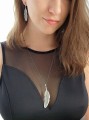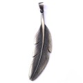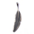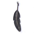 Zawieszka srebrna w kształcie piórka, została zoksydowana i wypolerowana.
